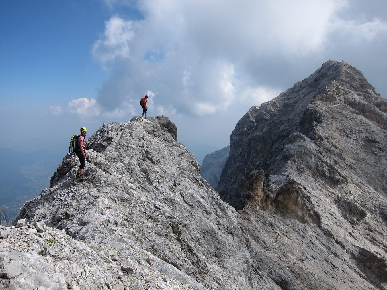 Der Jubiläumsgrat ist eine der spektakulärsten Gratüberschreitungen der Ostalpen die ich kenne. Diese Route ist nur etwas für geübte Kletterer und Bergsteiger. Diese hochalpine Gratüberschreitung solltest Du am Besten mit einem Bergführer oder mit einem „Gratkenner“ unternehmen. Es handelt sich nicht um einen reinen Klettersteig, sondern um eine kräftezehrende Tour mit vielen Kletterstellen III. Grads. Viele dieser Stellen sind komplett ungesichert. An einigen Stellen sind Drahtseilversicherungen und Eisenstifte angebracht.